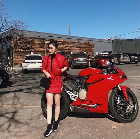 | Hương Tràm đang có chuyến lưu diễn ở nước ngoài. Người đẹp lưu lại khoảnh khắc diện trang phục đỏ đứng cạnh xe mô tô cùng tông màu nổi bật thu hút mọi ánh nhìn. |