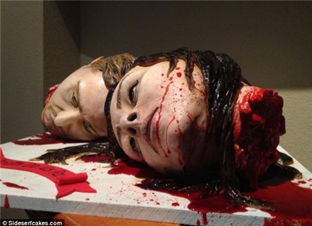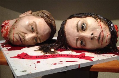 Một cặp vợ chồng sống ở tiểu bag Texas đã làm một chiếc bánh cưới mang hình ảnh vô cùng đáng sợ, hai cái đầu bị đứt lìa khỏi thân dính be bét máu bên cạnh là lời thề hứa “Đến chết mới chia xa” (Till death do us pass) thể hiện tình yêu bền lâu của họ.