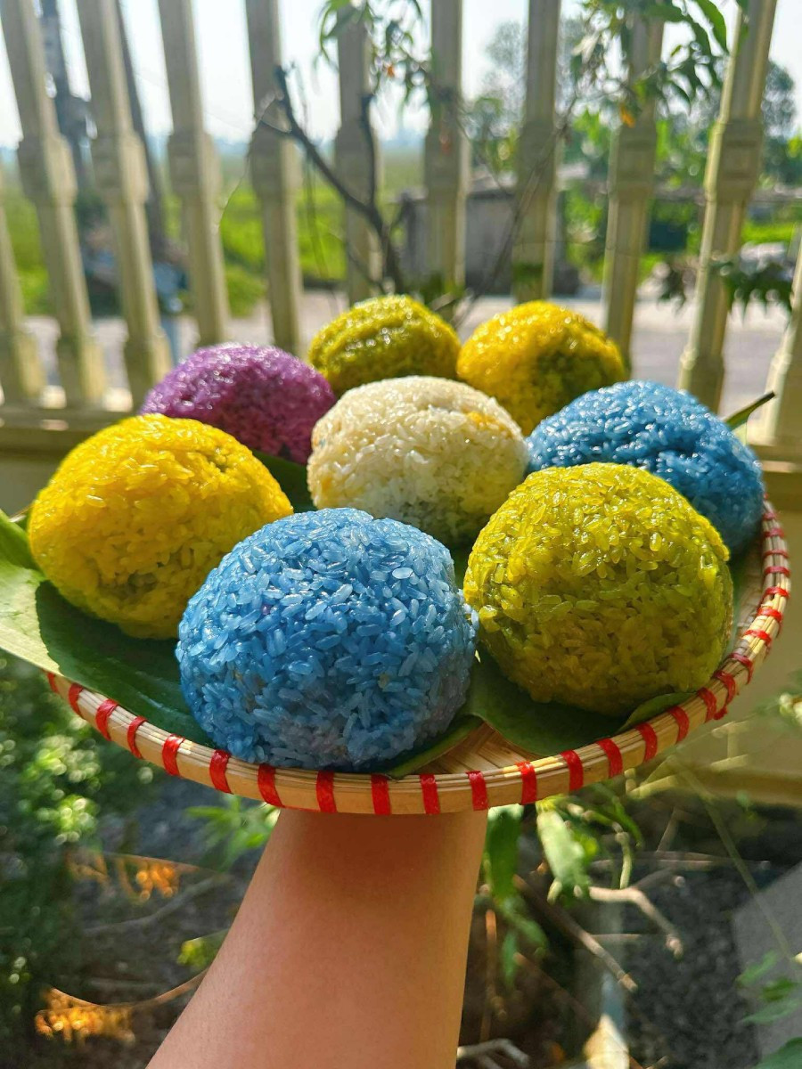 Màu sắc cho xôi chị đều lấy từ các cây tự nhiên, không dùng phẩm màu như: Tím từ cẩm, đỏ từ gấc, vàng từ quả dành dành, xanh từ hoa đậu biếc… Kết hợp cùng hạt nếp quê, mâm xôi vừa rực rỡ, vừa giữ nguyên hương vị dẻo thơm truyền thống.