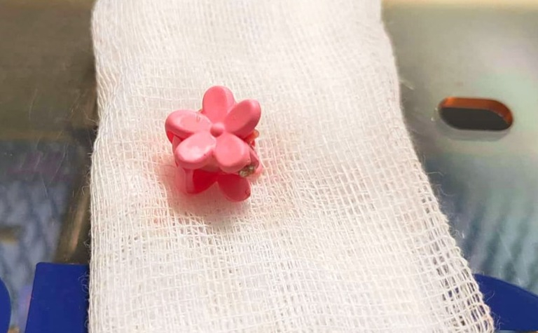 Chiều 24/8, các bác sĩ tiến hành lấy thành công dị vật - là một chiếc kẹp tóc nhỏ màu hồng, kích thước 2cm - ra khỏi âm đạo của bé. Sau thủ thuật, bé tỉnh, tiếp xúc tốt, không còn đau.
