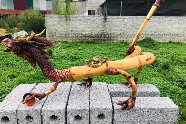 Với kinh nghiệm lâu năm, thợ nhà anh đã làm ra chiếc điếu cày có tạo hình rồng uốn lượn tinh xảo. Điếu cày và tre đều là những món đồ bình dân nhưng được biến hóa trở nên đắt đỏ và vô cùng độc đáo.