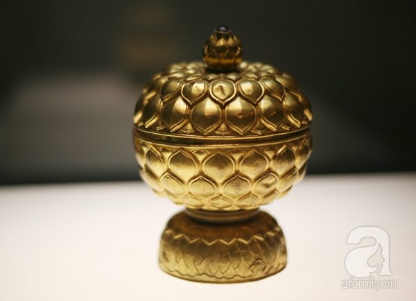 Thân hộp hình đài sen, chất liệu vàng từ thế kỷ XIX-XX.