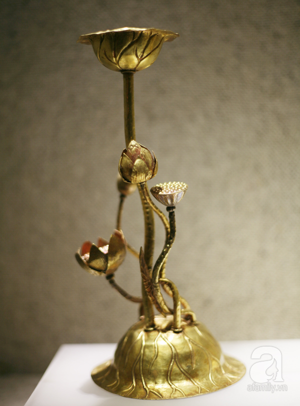 Sáng nay (14/5), tại Bảo tàng Lịch sử Việt Nam - số 1 Tràng Tiền đã khai mạc triển lãm "Sen trên cổ vật" với hàng trăm cổ vật từ nhiều triều đại. Đặc biệt, trong số hơn 100 cổ vật được trưng bày, có rất nhiều cổ vật bằng vàng ròng.