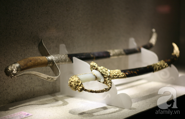 Kiếm trang trí hoa sen cách điệu, chất liệu vàng, ngọc và đồi mồi.