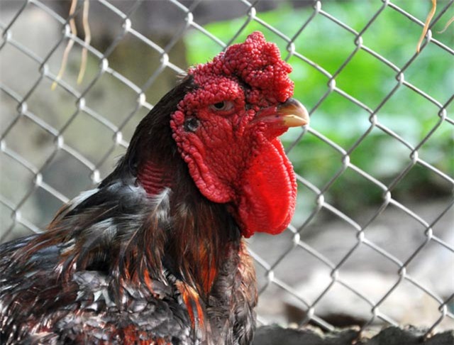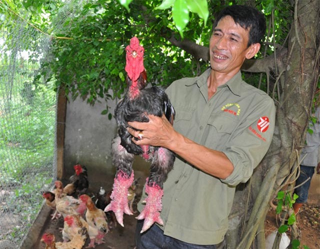 Ông Miền bên con gà “độc” quý hiếm của gia đình.