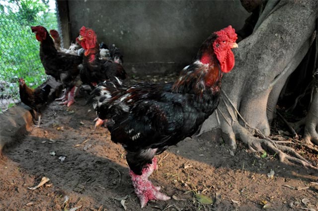 Gà quý được ghép nuôi với 2 gà mái để nhân giống.