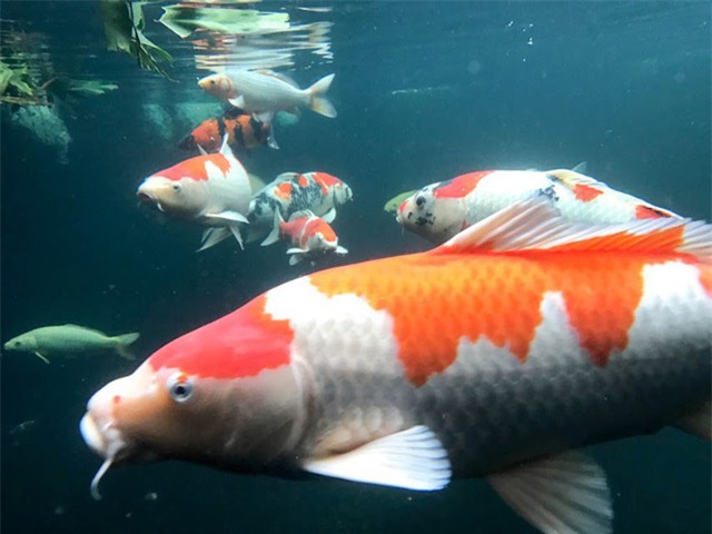 Mỗi con Koi trong bể có giá từ 3 triệu cho đến trên 20 triệu tùy theo kích thước, màu sắc của từng con. |
