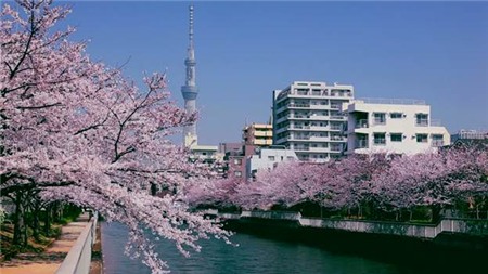 Du khách vừa có thể ngắm được toàn cảnh thành phố Tokyo và vừa có thể ngắm được vẻ đẹp bạc ngàng của những hàng cây anh đào đang rực rở khoe sắc dọc bờ sông Sumida.