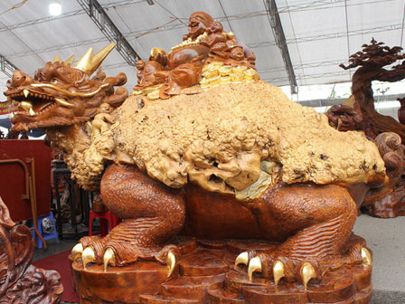 Tượng rùa dát vàng được làm từ gỗ nu quý hiếm, giá 600 triệu của đại gia Thái Bình