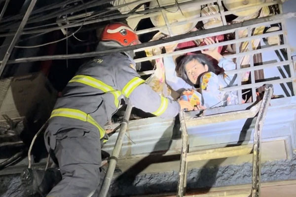"Có 3 nạn nhân mắc kẹt ở khu vực ban công, trong đó, hai người ở tầng 2 và 1 người ở tầng 3. Chúng tôi triển khai cứu hộ từ phía mặt ngoài ngôi nhà bằng thang và dùng banh cắt thủy lực cắt song sắt" - Trung tá Bình nhớ lại.
