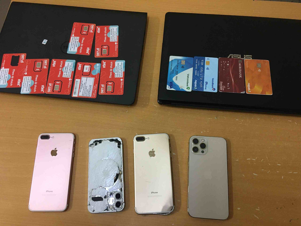 Tại hiện trường, lực lượng chức năng đã thu giữ được của đối tượng 2 máy tính để bàn, 3 máy tính xách tay, 8 điện thoại di động, 10 thẻ ngân hàng, 23 sim điện thoại di động và 56 triệu tiền mặt.