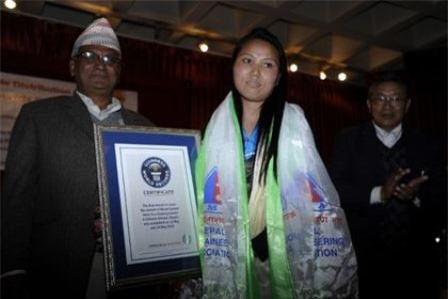 Vào ngày 25/2 vừa qua, Chhurim Sherpa được ông Posta Bahadur Bogati - Bộ trưởng Du lịch Nepal - trao giấy chứng nhận của Tổ chức Kỷ lục Guiness Thế giới công nhận thành thành tích đó của cô.
