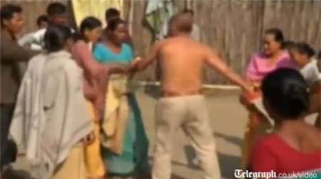 Ông Bikram Singh Brahma bị các phụ nữ lột áo và tát vào mặt. Ảnh chụp màn hình |