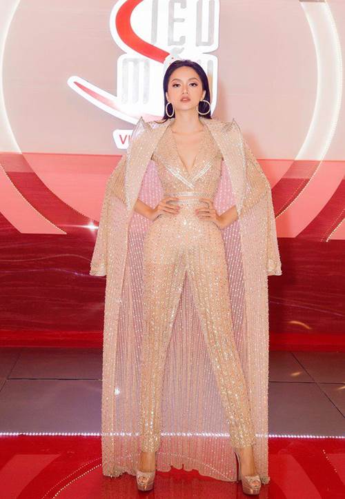 Hương Giang luôn mang đến sự thú vị, mới mẻ trong mỗi bộ cánh thời trang mà cô diện. Thiết kế xuyên thấu của NTK Công Trí giúp Giang thêm nổi bật.