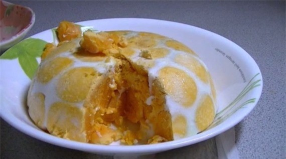 Bạn không cần nêm nếm gia vị, chỉ cần cho hết 50 lòng đỏ trứng vào nồi cơm điện, sắp xếp ngay ngắn rồi bật nút nồi cơm mà thôi. Dưới đáy nồi và xung quanh nồi, bạn có thể phết ít bơ hoặc dầu ăn để chống dính. Sau khi nấu chín, bạn đã có món bánh trứng thơm ngon và trông lại khá đẹp mắt nữa. Hẳn là bạn chưa bao giờ dùng thử món trứng chế biến kiểu này phải không nào? Đây là một món ăn rất đáng để bạn thử nghiệm đấy nhé.