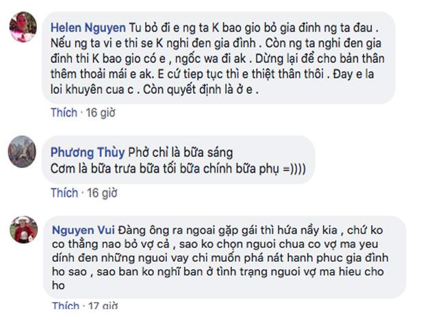 "Đã phá hoại gia đình người khác còn lên đây tâm sự được. Em còn trẻ, thiếu gì cơ hội mà lại đi cặp kè với người đàn ông đã có vợ thế?", chị Hoàng Lan bức xúc.