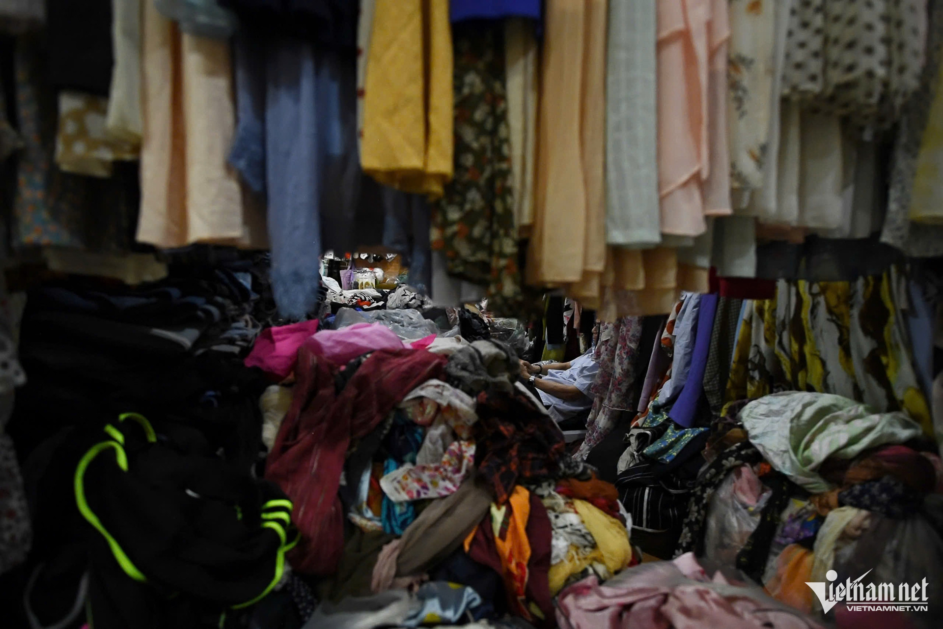 Bên trong các ki-ốt đóng cửa là nhiều loại hàng thời trang đa dạng mẫu mã.