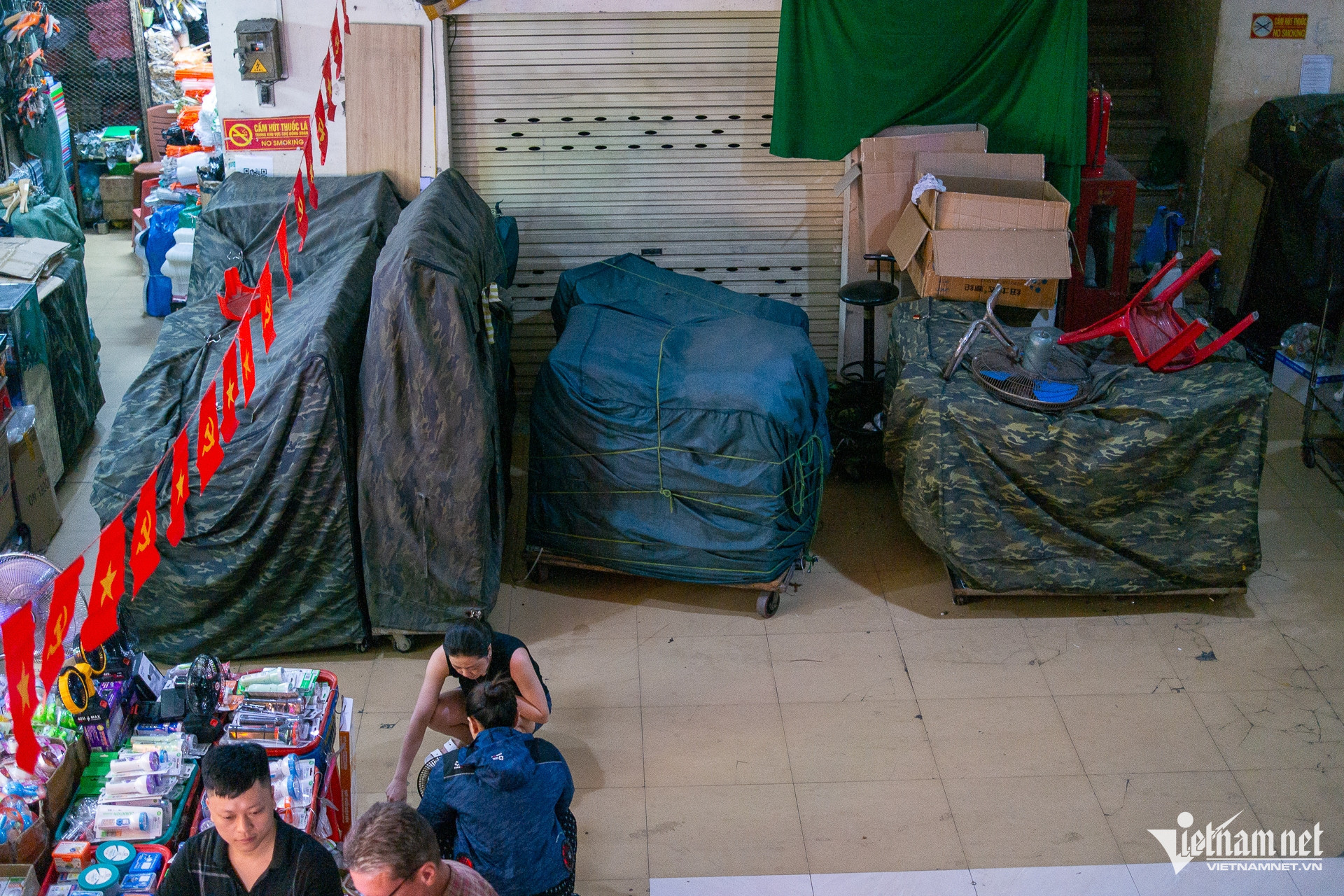 Cùng thời điểm này, tại chợ Đồng Xuân (quận Hoàn Kiếm), cảnh các gian hàng, ki-ốt đóng kín cửa cũng diễn ra hàng loạt.