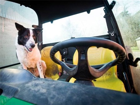 Chú chó Don trên chiếc máy kéo của ông chủ