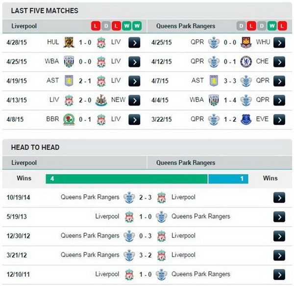 Nếu như Liverpool đang dần hụt hơi trong cuộc đua giành một vé đến châu Âu thì QPR dương như đang tận hưởng những ngày tháng cuối cùng tại sân chơi danh giá nhất nước Anh khi hiện tại, họ vẫn đang xếp thứ 19 ở NHA. Phong độ của đội bóng London là cực kỳ kém coi khi trong 5 trận gần nhất, họ chỉ thắng 1, hòa 2 và thua 2 trận. Chính những lần sảy chân liên tiếp khiến QPR tự đánh mất lợi thế của mình trong cuộc đua trụ hạng năm nay.