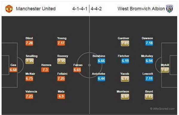 Mặc dù Carrick vẫn chưa thể trở lại nhưng MU đã đón một tin vui khi Rooney sẵn sàng để ra sân trong trận đấu đêm nay sau khi có tin đồn anh dính chấn thương vào giữa tuần. 90% Van Gaal sẽ kéo Rooney về đá tiền vệ trung tâm, nhằm khỏa lấp bớt khoảng trống giữa sân. Với sự đa năng và kinh nghiệm thi đấu của mình, Rooney chưa bao giờ phụ lòng ông thầy Hà Lan khi ông xếp anh đá tiền vệ trung tâm. Anh còn rất có duyên với mành lưới West Brom khi một mình anh đã ghi tổng cộng 7 bàn trong 6 lần chạm trán đội chủ sân The Hawthorns.