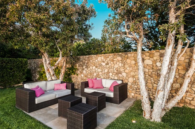 Trong sân vườn các vị khách có thể ngồi thư giãn ngắm biển hoặc ngâm mình trong bể bơi vô cực.
