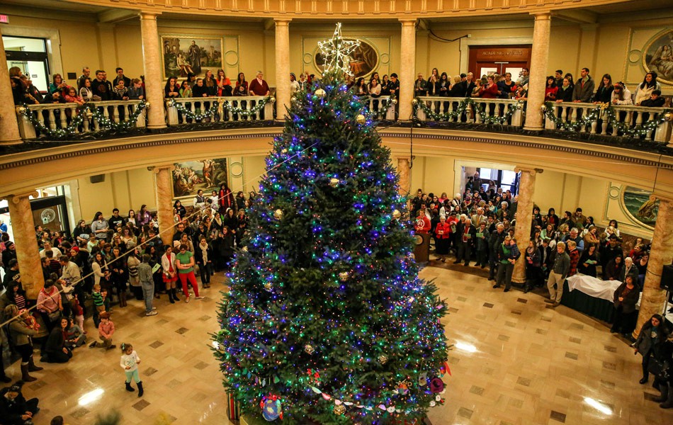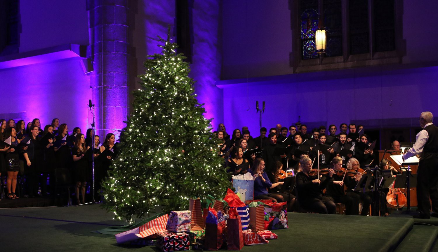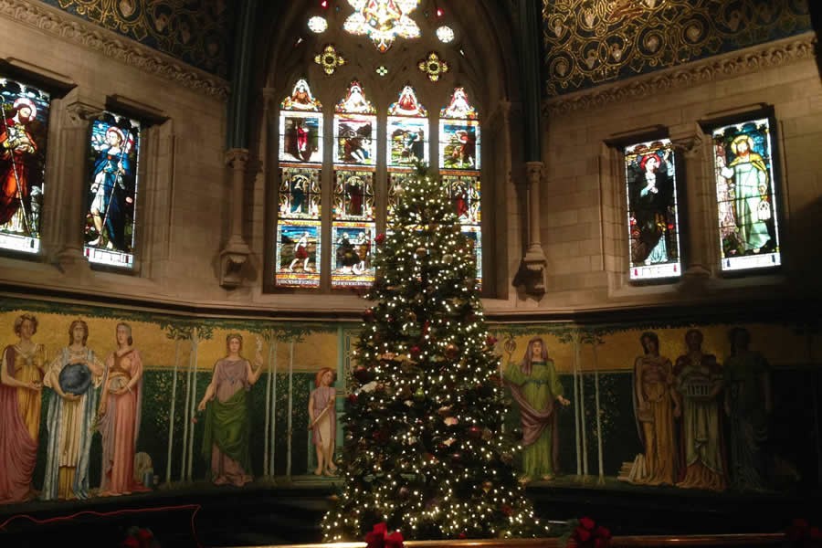Cây thông lớn chính là đặc trưng của không gian Giáng sinh tại các trường Đại học