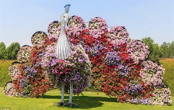 Giữa sa mạc khô cằn, công viên Dubai Miracle Garden với 45 triệu bông hoa được sắp đặt theo phong cách sáng tạo, tuyệt đẹp khiến bất cứ ai cũng phải choáng ngợp.