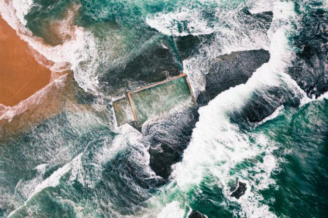 Sóng biển đánh tràn qua bể bơi tại một bãi biển công cộng ở thành phố Sydney, Australia.