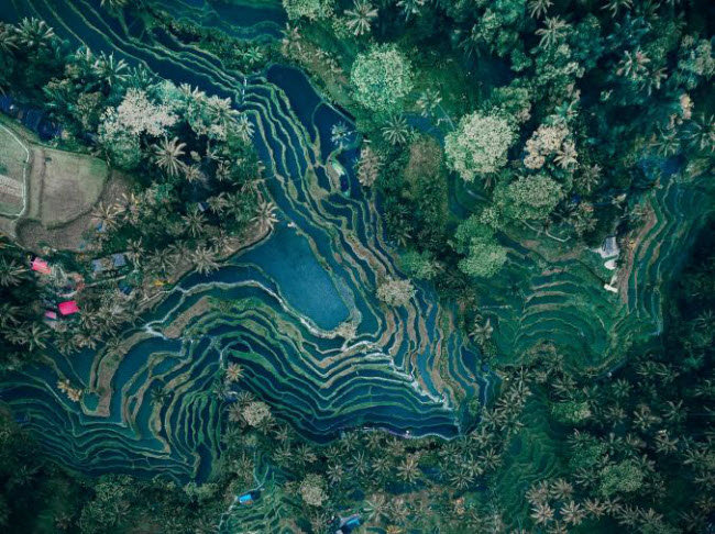 Vẻ đẹp nhìn từ trên cao của những thửa ruộng bậc thang ở Bali, Indonesia.