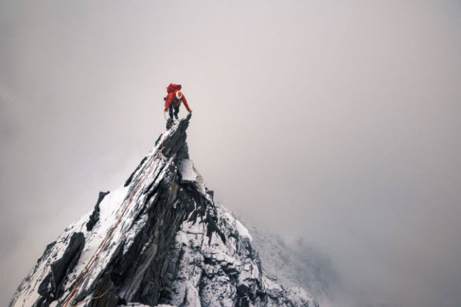Người leo núi đứng trên đỉnh Täschhorn thuộc dãy núi Alps ở Thụy Sĩ.
