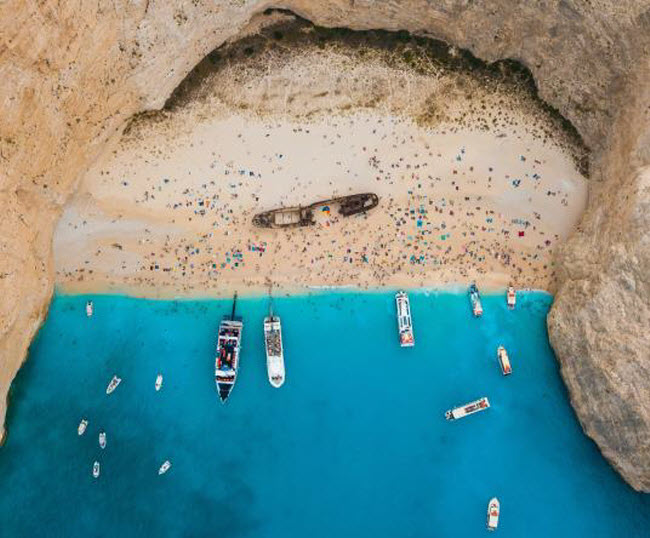 Xác của tàu MV Panagiotis nằm trên bãi biển Navagio Beach ở đảo Zakynthos, Hi Lạp.