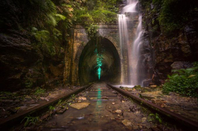 Khung cảnh đẹp ma mị tại cửa hầm đường sắt bỏ hoang ở Helensburgh, New South Wales, Australia.\
