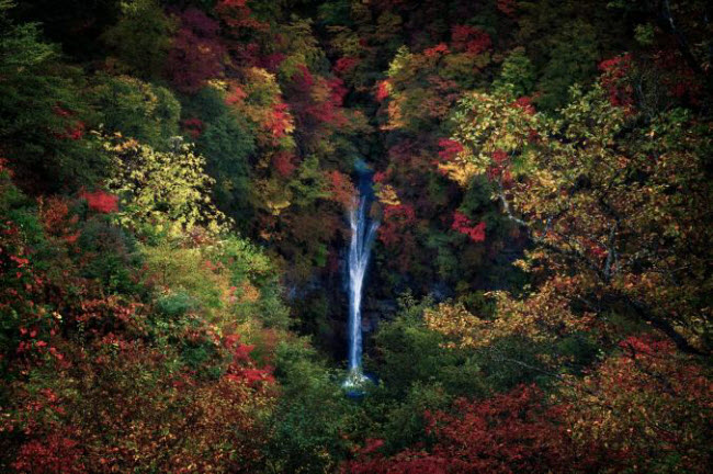 Khung cảnh mùa thu đẹp như tranh vẽ xung quanh thác Komadome ở Nasu, Nhật Bản.