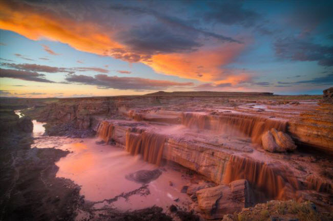 Vào lúc hoàng hôn, nước trên thác Grand có màu như sô-cô-la ở sông Little Colorado, bang Arizona, Mỹ.