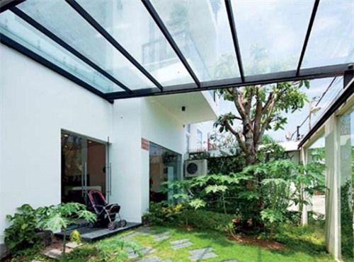 Không gian xanh với những thảm cỏ và dàn dây leo cực kì mát mắt.