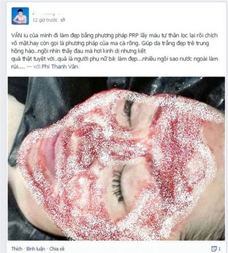 Tháng 1/2014, một người bạn của Phi Thanh Vân đưa tấm hình ‘người đẹp dao kéo’ đi làm đẹp bằng máu đã khiến nhiều người bị sốc.