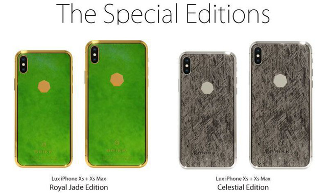 Bên cạnh đó, Brikk còn giới thiệu một loạt các phiên bản iPhone XS được làm từ kim cương, đá cẩm thạch, và nhiều loại khoáng vật quý hiếm khác nhau. Điểm độc đáo là người dùng có thể lựa chọn cách phối các loại đá với nhau sao cho ra được sự kết hợp ưng ý nhất.