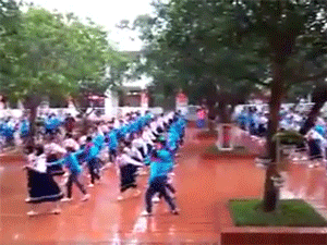 Mặc dù sân trường còn ướt sũng sau cơn mưa nhưng điều đó cũng không "làm khó" sự say mê và hứng thú của học sinh và thầy cô. Clip ngay sau khi được đăng tải đã nhận được 340.000 luợt like và 2.726 lượt chia sẻ từ trang facebook của cô giáo Đặng Thị Bích Dừa.