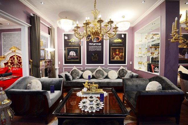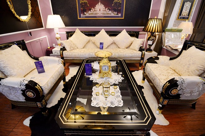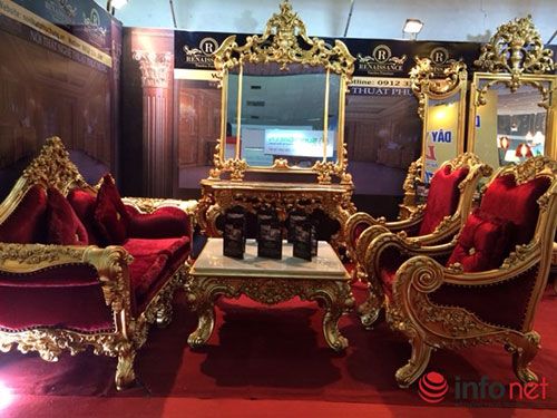 Được làm từ gỗ trắc Nam Phi và dát vàng lá bộ bàn ghế này có giá 500 triệu đồng.