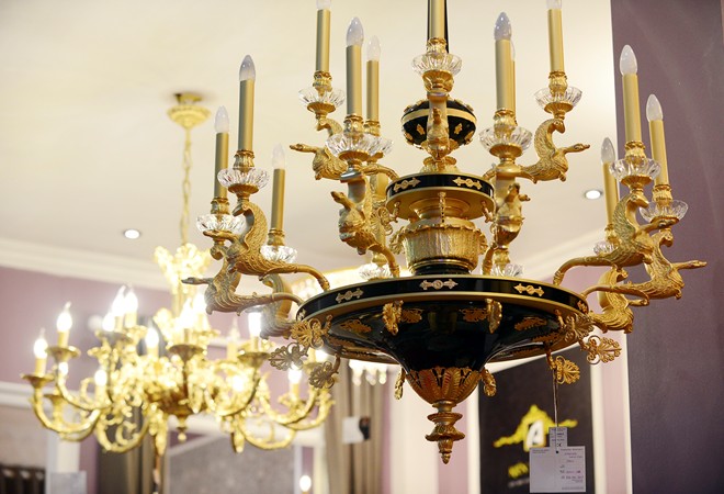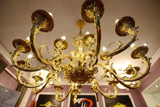 Một đèn chùm có giá gần 900 triệu đồng đúc từ đồng, mạ vàng 24K với thiết kế tinh xảo.