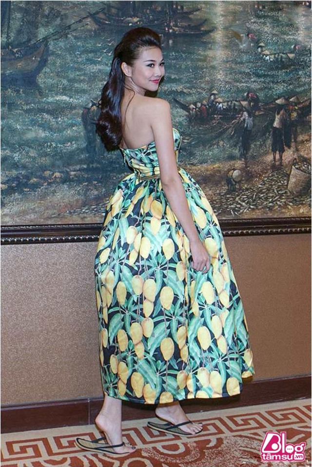 Diện chiếc váy hoa bồng bềnh đầy xinh đẹp nhưng bên dưới Thanh Hằng lại đi một đôi dép xỏ ngón.
