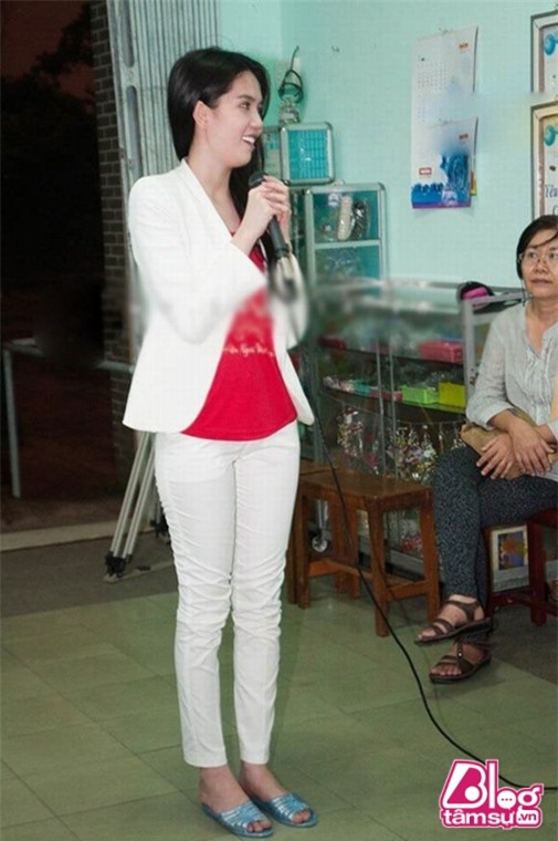 Ngân Khánh diện bộ đồ bó sát khoe những đường cong cơ thể nhưng lại đi dép xỏ ngón.