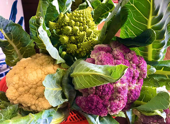 Súp lơ đủ các loại màu cũng xuất hiện trên vườn rau của gia đình chị Hương.
