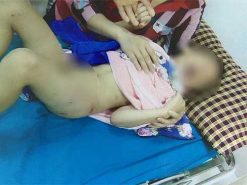 Tới viện, Đ. hoảng sợ, khóc nhiều, các vết thương chi chít ở vùng đùi, mông, bẹn. Các bác sĩ sát khuẩn vết thương và cho Đ. nhập viện.