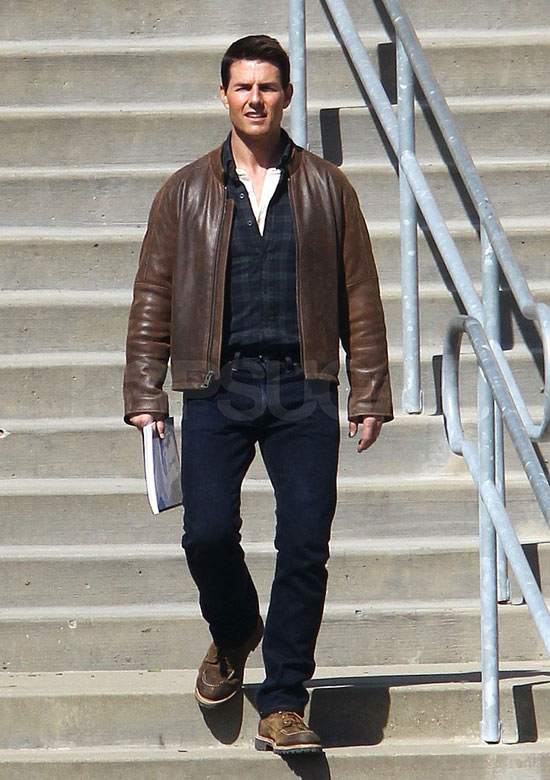 Set đồ gồm áo da lửng, quần jeans, áo sơ mi bên trong khiến vóc dáng Tom Cruise nhìn rất cao ráo, đĩnh đạc. Ít ai biết rằng nam tài tử “Nhiệm vụ bất khả thi” sở hữu chiều cao khá khiêm tốn 1m70.