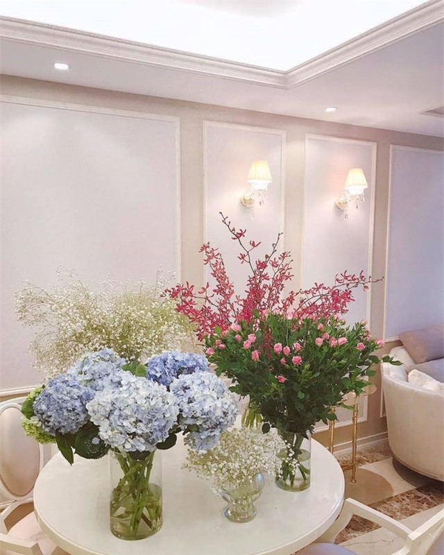 Căn hộ của Phạm Hương luôn ngập tràn ngập sắc hoa.