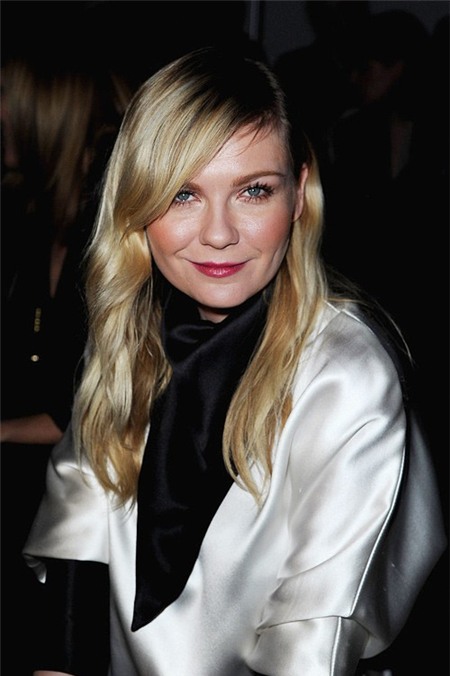 Giải pháp cho gương mặt tròn của Kirsten Dunst là cách để mái chéo dài và lệch giúp tăng độ dài cho khuôn mặt.