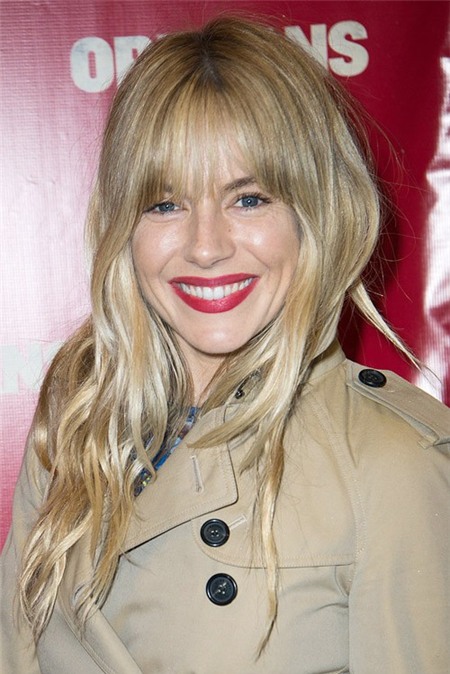 Sienna Miller cũng mới có một lựa chọn hoàn hảo cho gương mặt oval với phần mái thưa rất phù hợp với những lọn tóc dài boho.