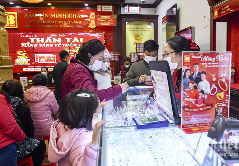 Ghi nhận tại các cửa hàng vàng vào ngày 7/2 (mùng 7 tháng Giêng Âm lịch), lượng người đổ tới mua vàng khá đông dù chưa phải là ngày vía Thần Tài. Có thời điểm mọi người còn chen chân nhau chờ mua vàng.